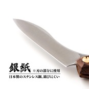 刃幅が狭いので、バターナイフとして、 ステーキナイフとして食卓のちょっとした作業や、木を削ったり、紙を切ったりといった作業などマルチ使いも可能。